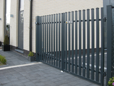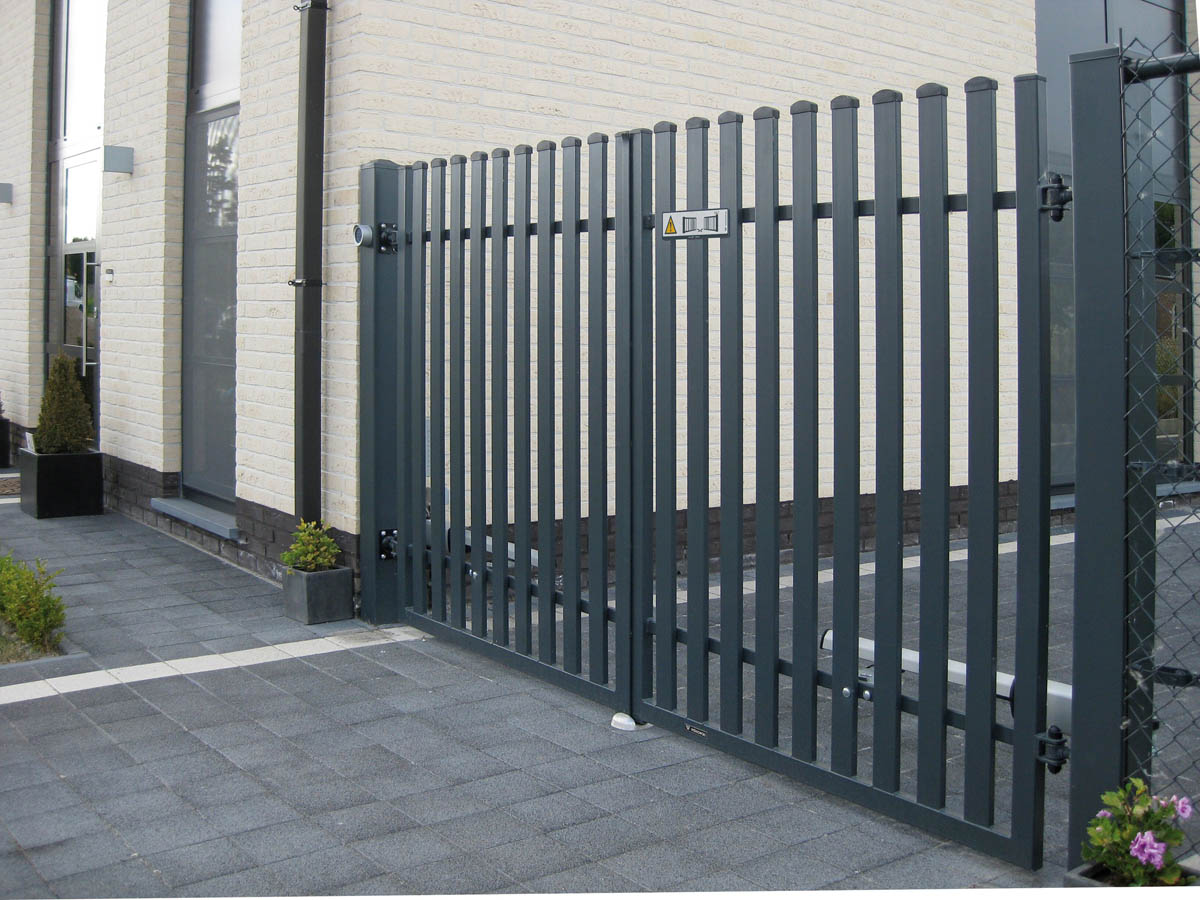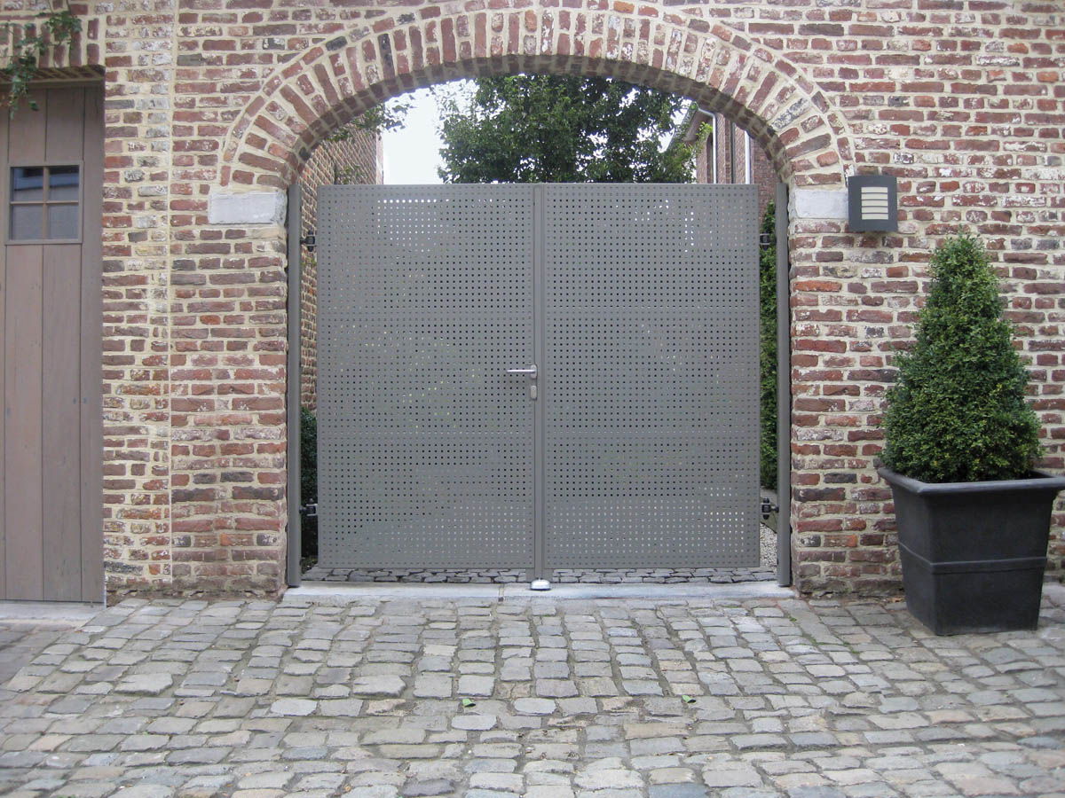 er en korrekt udvalgt port/låge, eventuelt med tilhørende hegn, der matcher den samlede løsning.