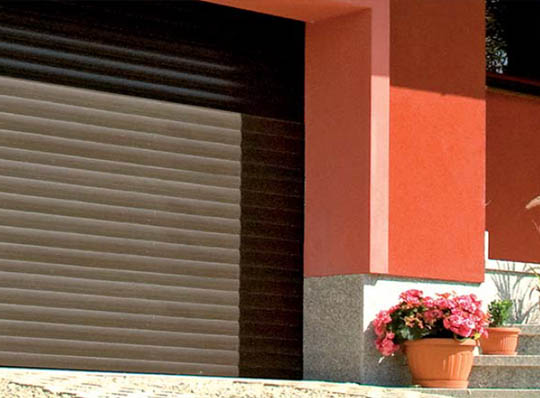 • Portbladet bevæger sig i lodrette aluminiumskinner og ruller op på en rulle